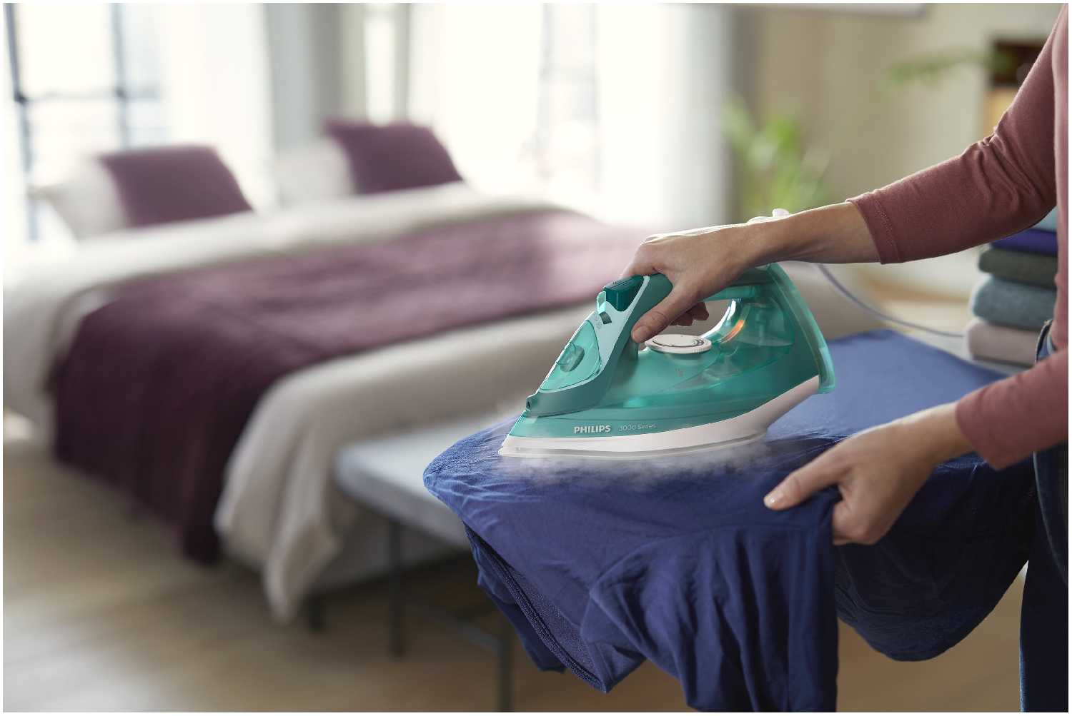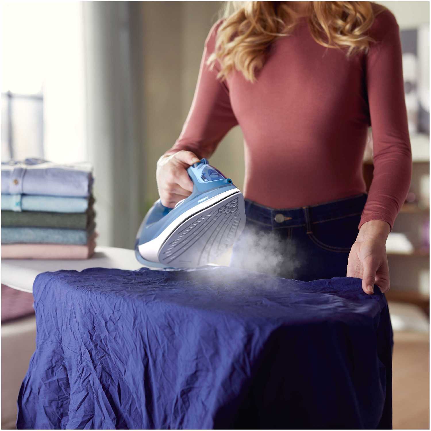 - Функция постоянного пара поддерживает равномерное отпаривание без промежуточного сбрызгивания.
