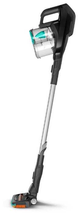 - + Это самый лучший беспроводной пылесос, в том числе среди таких же Philips!!! Упакован, как дорогое охотничье ружьё, отличный дизайн и качество сборки, самый оптимальный набор насадок, его турбощётки отлично чистят от мелкого мусора и пыли любой пол, ковры и мягкую мебель. Светодиодная подсветка на основной насадке - вообще вещь незаменимая, не оставляющая ни единого шанса оставить какой-то участок пола неубранным. Пылесос лёгкий, манёвренный, удобный, пылесборник 0,6 литра достаточно объёмный для нормальной уборки, заряда аккумулятора также хватает, насадки легко меняются, пылесборник легко снимается и опустошается, при желании его можно и помыть водой.