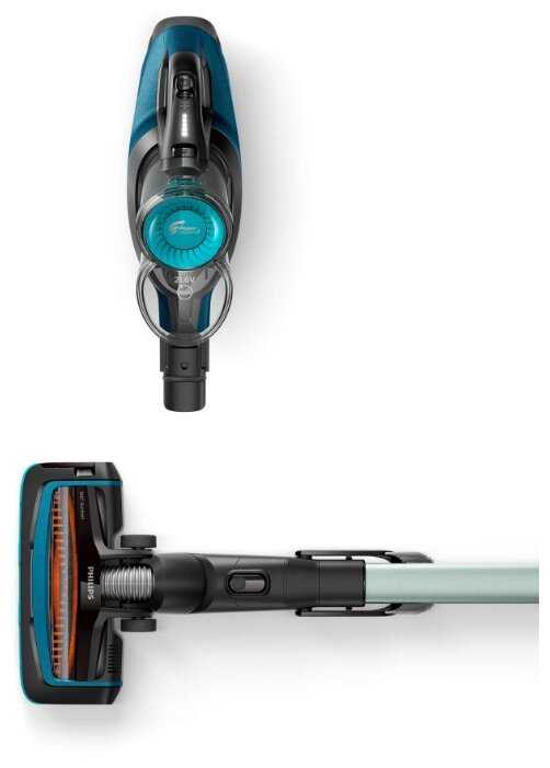 Куплен 2 дня назад. Собиралась покупать сначала обычный пылесос Kerher с аквафильтром и проводом, но менеджер по работе с клиентами от Tefal посоветовал модель вертикального беспроводного пылесоса, к чему я изначально относилась скептически. Если бы не вес самого пылесоса и не отсутствие маневренности - приобрела бы Tefal, т.к. мощность всасывания колоссальная. Начала изучать отзывы этой модели прямо в магазине))) Оказалось, что самые лучшие отзывы о модели Philips FC6728/01 и во всех отзывах один минус - высокая цена!) Поскольку скидка на покупку Philips составила 10000, еще минус 5% за то, что это был последний экземпляр в магазине (новый, но выставлен как образец) и 10000 кэшбэк, то я очень довольна своим приобретением. Приехав домой я гадала: какой пылесос все-таки окажется лучше: Tefal или Philips? Поставила на зарядку (примерно минут на 30), агрегат зарядился на 3 пункта и я пропылесосила всю квартиру - 57м за 15 минут на этом заряде, переходя на режим 2 периодически. Отлично собирает мелкую пыль, протирает полы, но перед сильно загрязненным полом лучше сначала пропылесосить, а затем делать влажную уборку.
