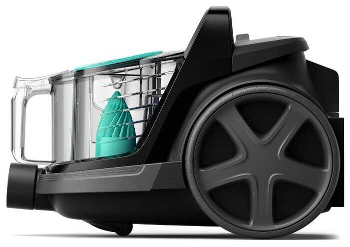 Шнур очень длинный (6 метров), а также присутствует функция автоматической смотки шнура- это тоже плюс. Контейнер для мусора достаточно вместительный, легко чистится и отлично промывается под струей проточной воды. Резиновые колеса легко скользят по любому покрытию, придавая прибору еще большую мобильность, не царапают линолиум и ламинат, а также скрадывают шум при перемещении прибора. Вес прибора небольшой (не более 5 кг) при такой достаточно большой мощности._x000D_