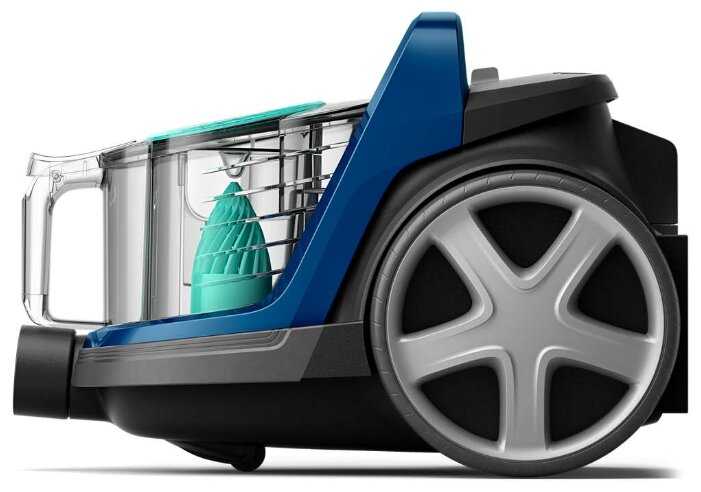 - + Высокий запас мощности, плотно прилегает к любым напольным покрытиям. В комплекте поставляется набор разных насадок и щёток: - основная насадка TriActive с дополнительными отверстиями по бокам и жёсткой щёткой; - насадки для чистки мебели от пыли и шерсти животных; - мягкая щётка на рукояти. Очень понравились прорезиненные вставки на колёсах, благодаря чему не царапается пол при движении устройства. Особенная конструкция пылесборника размалывает клубы пыли и мусора, поэтому опорожнение контейнера легко производится одной рукой. Чистка не требует особых усилий, достаточно просто сполоснуть контейнер водой. Раз в три месяца необходимо промывать фильтр, раз в год производить его замену. Очень длинный провод. Пылесос легко передвигается, нет необходимости прилагать усилия к нему, чтобы сдвинуть с места. Хорошо очищает любые покрытия, будь то ковёр или линолеум. Так же, полностью герметичная система фильтрации воздуха Allergy H13 удерживает более 99,9% мелкой пыли, включая пыльцу, шерсть животных и пылевых клещей.