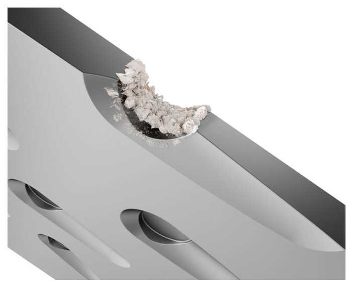 - Накипь скапливается в отдельном съёмном контейнере, который легко очищается без разборки утюга.