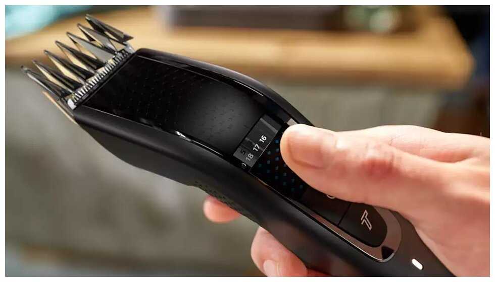 - Центральная регулировка высоты расчески упрощает настройку без замены насадок.