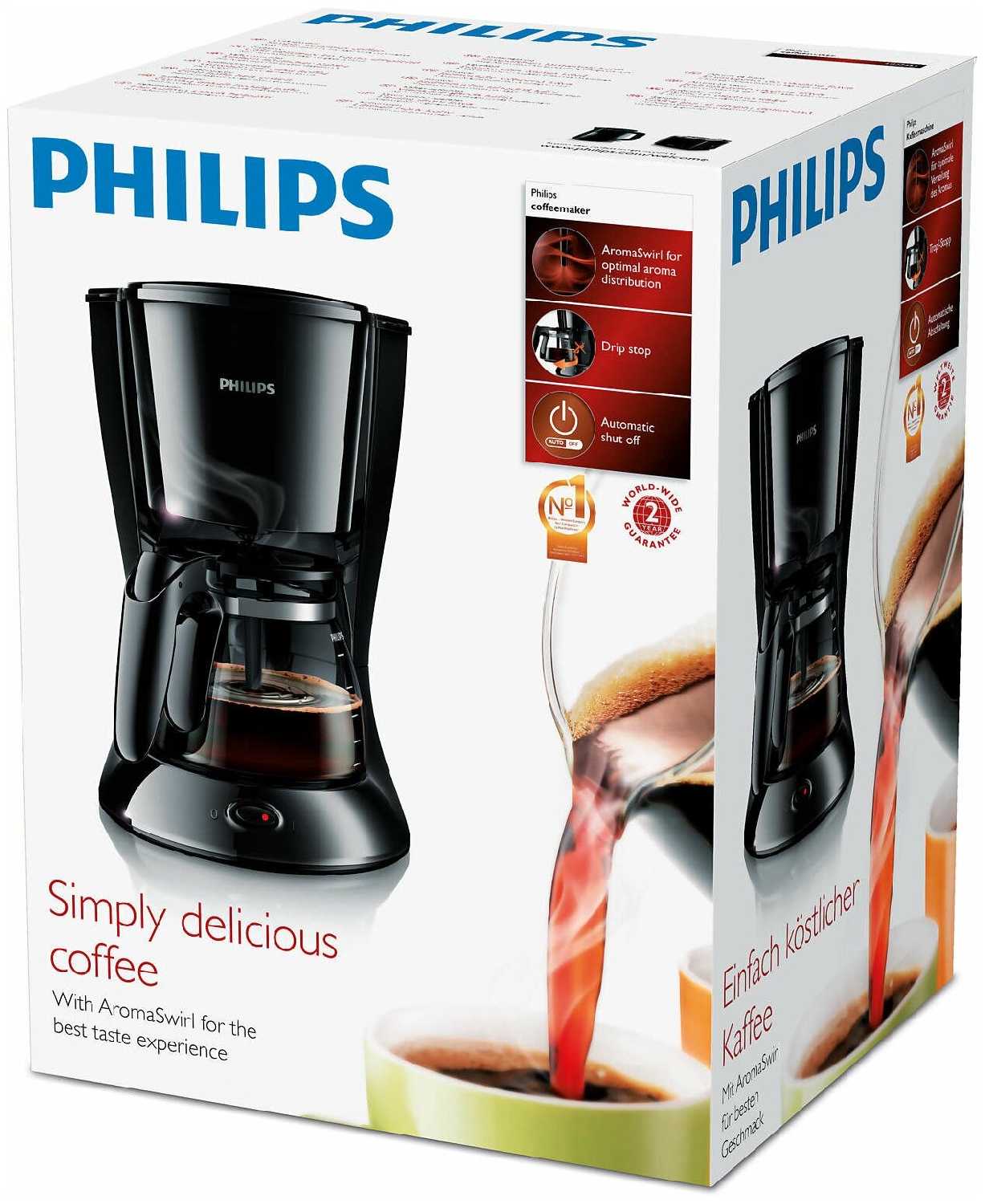 Это уже вторая кофеварка Филипс в нашем доме. Первая, маленькая, отработав лет 10, хоть и отправлена на заслуженный покой, вполне в рабочем состоянии. Эту кофеварку выбирали из-за "классической" формы, компактности и красивого белого дизайна. Работает у нас давно, проблем нет, моется легко. Занимает относительно мало места. Удобная большая ручка, большая плоская крышка над чашей - кофе не капает мимо.