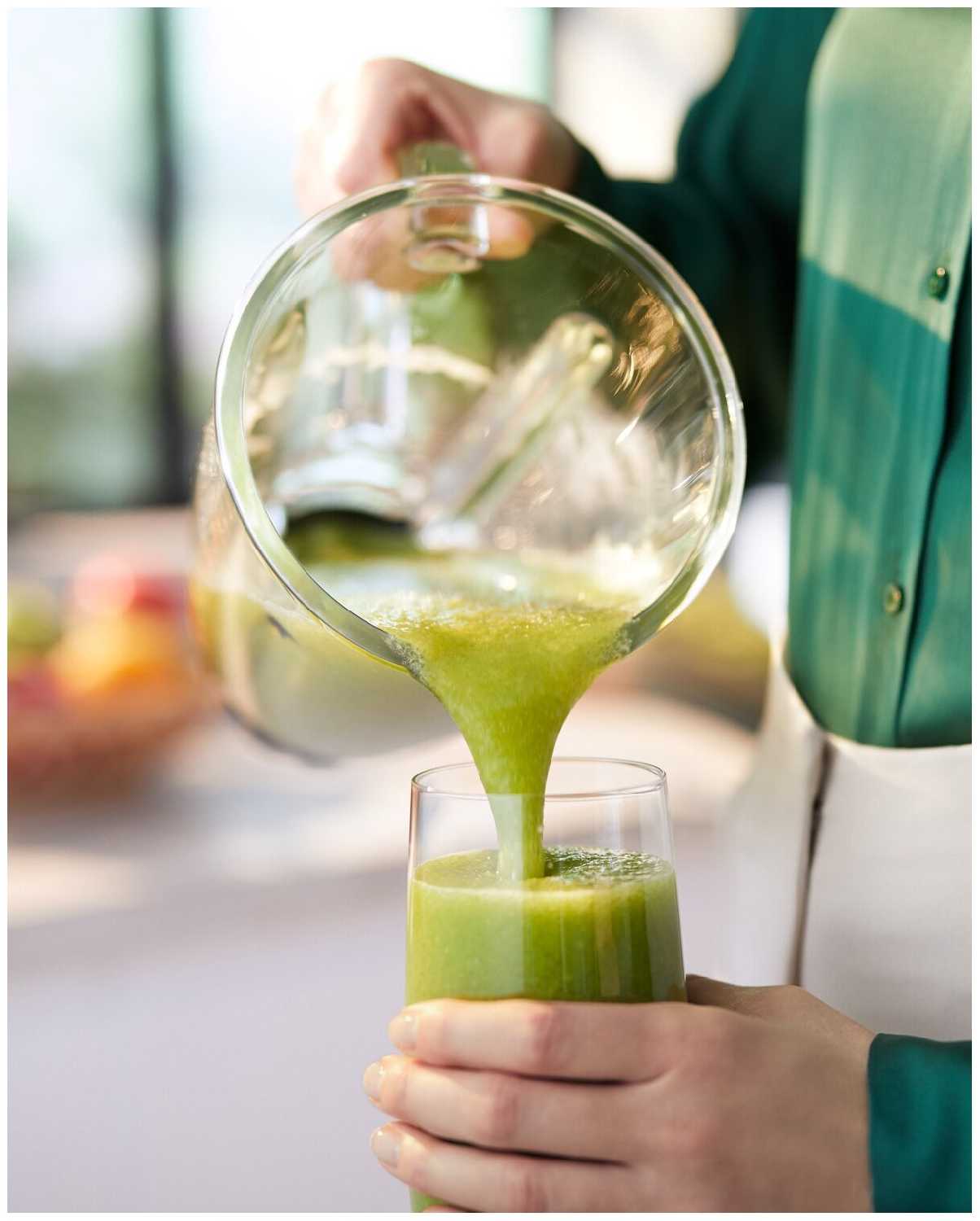 Стакан достаточно тяжелый и создан из прочного стекла. Так же хочу отметить, что стеклянный стакан имеет необычные ребра,которые создают поток для лучшего смешения ингридиентов. Объем стакана составляет 2 литра, это позволяет приготовить до 1,5 литра полезного и вкусного напитка.
