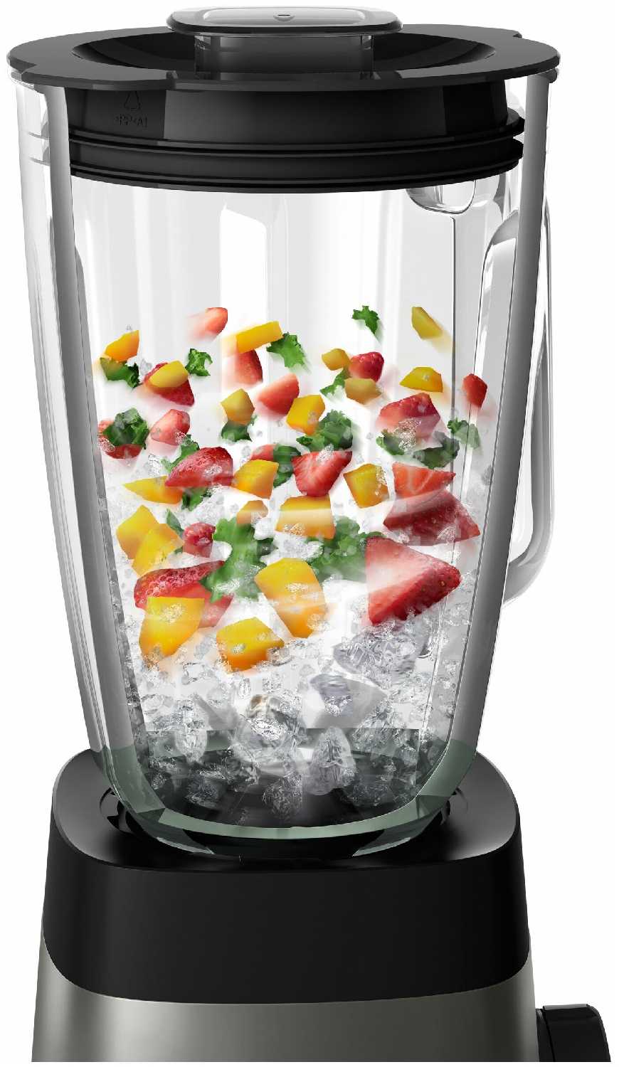 - - Когда помещаешь много кусочков фруктов, где то на уровне 1,2 литра, возникает проблема с их перемоткой так как образуется ниша , где лезвие крутится и они не проваливаются, может надо мельче резать, сталкивался с таким при переработке яблок ну и шумит. Плюс графин тяжеловат, так как из стекла, для стариков , например , не очень удобно