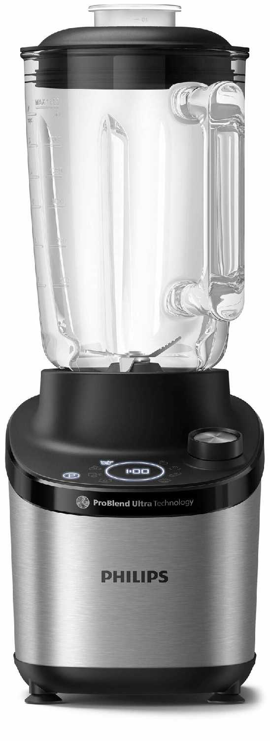 - 4 предустановленных программы (смузи, лёд, суп, импульсный режим) с чёткой дифференциацией скорости вращения ножей (до 30 000 об/мин).