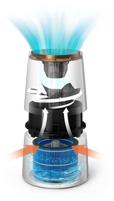 - Вентилятор с регулируемой скоростью (3 уровня) адаптируется под размер помещения.