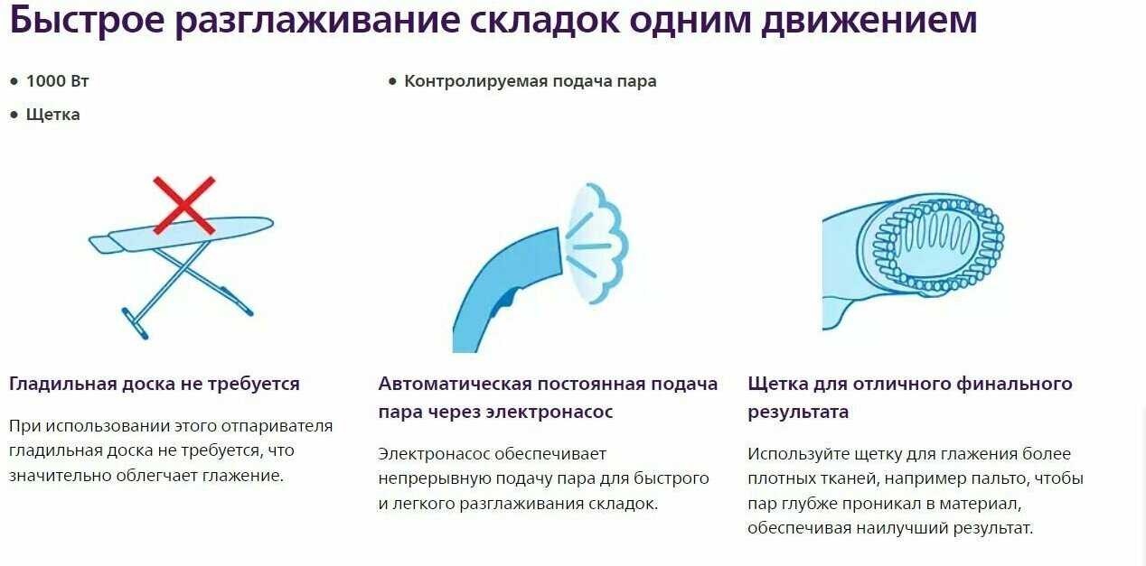 - + Всё работает, удобно лежит в руке, прост в использовании, нагревается быстро, рубашку из хлопка привела в порядок за 5 минут