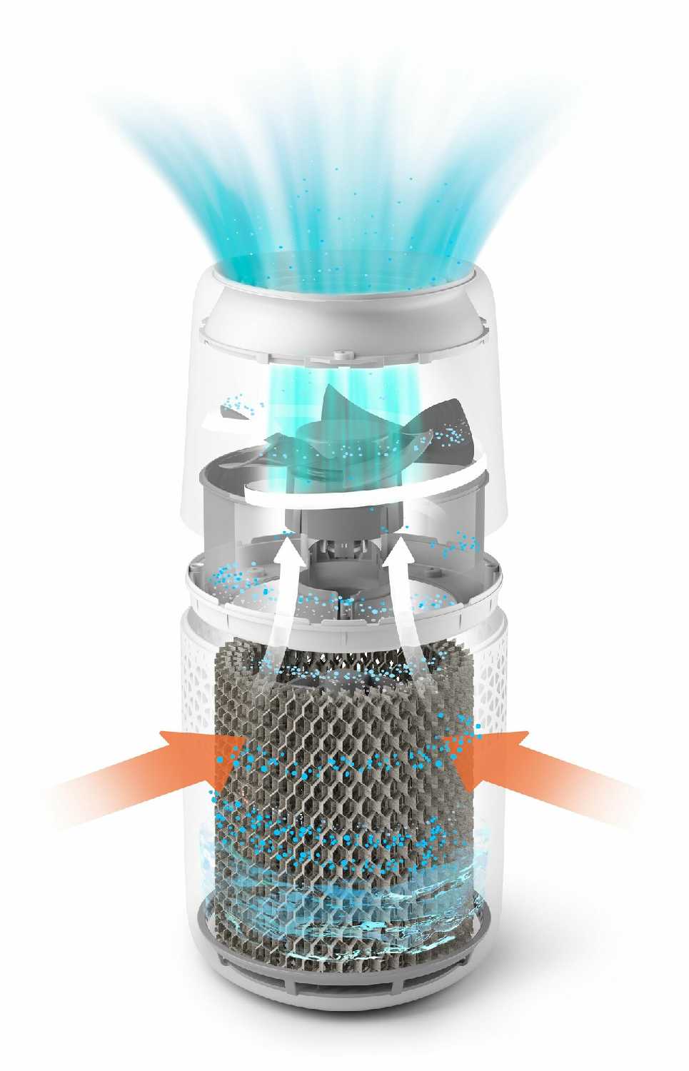 - Комбинация HEPA-фильтра, угольного и деодорирующего элементов обеспечивает комплексное удаление из воздуха пыли, аллергенов, табачного дыма и неприятных запахов.