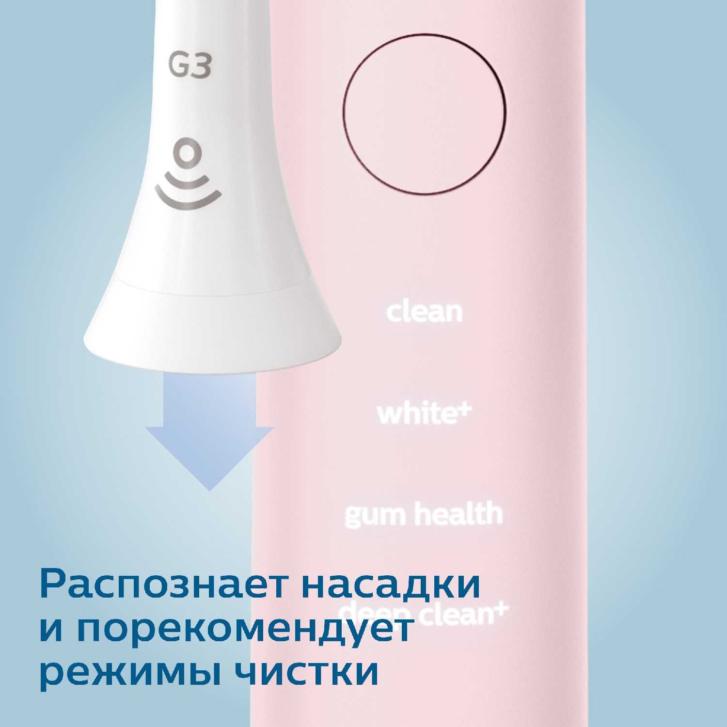 При установке насадки (например, А3 или C3) щетка автоматически распознает ее тип и выбирает оптимальный режим интенсивности. Это исключает ручную настройку и обеспечивает специализированную чистку для отбеливания, чувствительных десен или массажа. Пользователи подчеркивают интуитивность системы и плавное переключение между функциями. -
