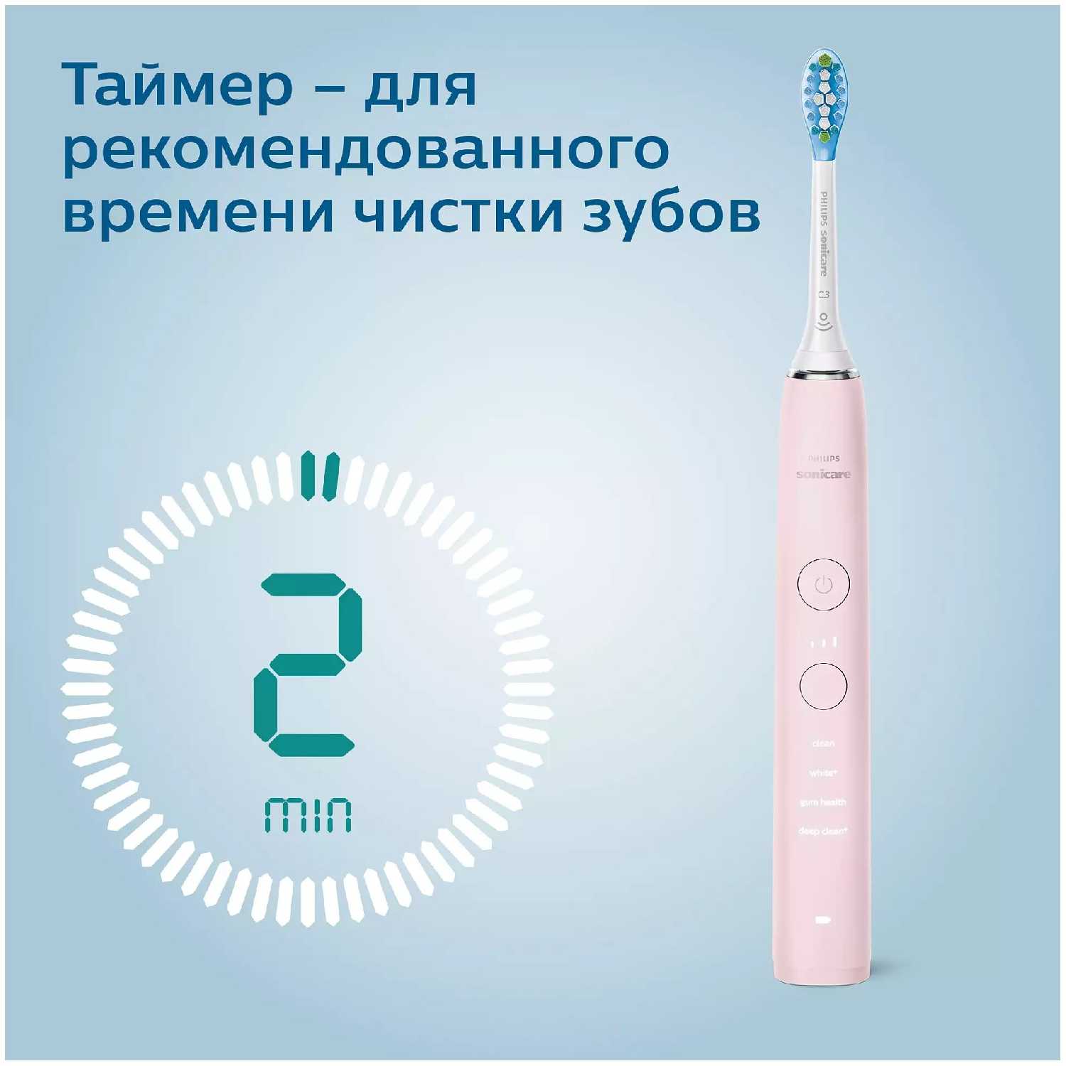 - Встроенный таймер с зональным контролем (30-секундные интервалы) дисциплинирует процесс чистки согласно стоматологическим нормам.