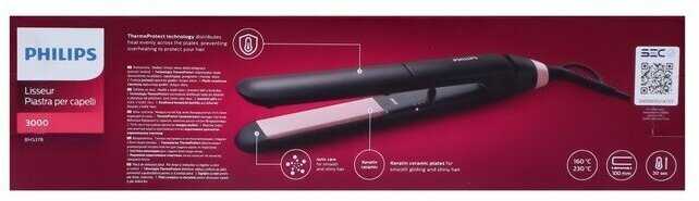 - + У данного выпрямителя есть замечательная возможность выбора степени нагрева от 160 до 230 градусов. Благодаря керамическим пластинам волосы сохраняют свою структуру и после выпрямления их внешний вид заметно улучшается. Отдельно хотелось бы отметить технологию ионизации, которая предотвращает электризацию волос, делая их гладкими и блестящими! Выпрямитель быстро нагревается в течение 30 секунд и если Вы забудете его выключить, то через 60 минут он автоматически отключается. У модели BHS378/00 длинный провод 1.8 метра, который крутиться, таким образом можно избежать перекручивание шнура. Так же есть петелька для того, чтобы можно было повесить и защелка фиксирования пластин для безопасного и удобного хранения. Я беру его с собой в путешествия, так как присутствует совместимость к розеткам от 110 до 240 вольт.