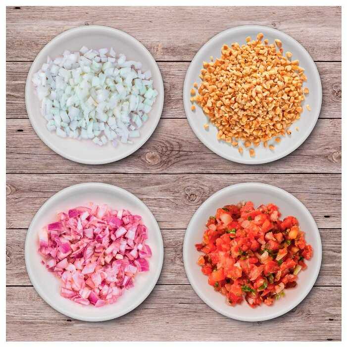 - + Это подарок дорогому мне человеку, чтобы нарезка лука, моркови, приготовление соусов не вызывали никаких затруднений. Нужна нарезка кусочками- легко! Поставила сетку, "верхний"нож, заложила овощи... вуаля! Пол-минуты на сборку - измельчение овощей, еще пол-минуты на ополаскивание под струей воды, - быстро, удобно, без лишних усилий. А всякого рода соусы для салатов, пасты для бутербродов - ах, только загрузить (например, кунжут+зелень+чесночок+немного соли) и измельчить с применением "нижнего" ножа, потом переложить пасту в баночку с крышкой и использовать, когда потребуется - в салат или к мясу, или к птице. Также в "нижнем"измельчителе делала фарш, когда мясорубка сломалась, и тоже всё удачно. Прибор заменяет монотонный повторяющийся труд на кухне не только при нарезке лука. Упрощение процесса готовки реально оставляет силы, время и желание экспериментировать, сделать что-нибудь ещё. Благодарна создателям этого необходимого девайса.