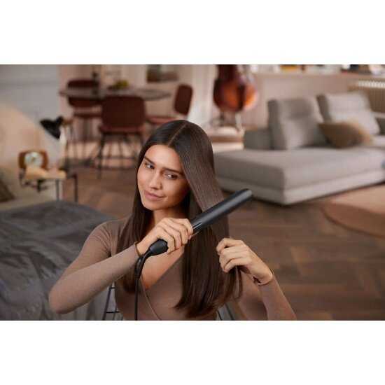 - Автоматическое поддержание температуры исключает перегрев и повреждение структуры волос.