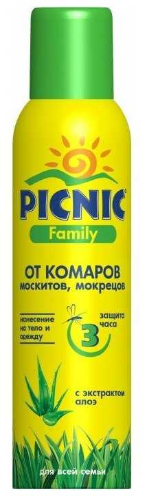 | Подробная комплектация : | Аэрозоль от комаров Picnic Family 150 мл |