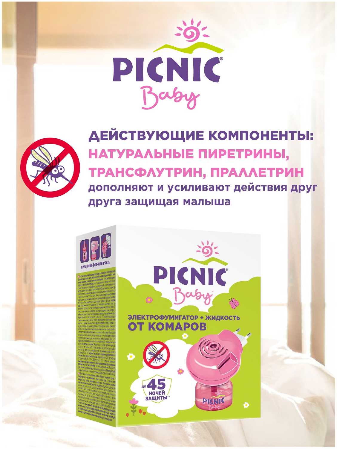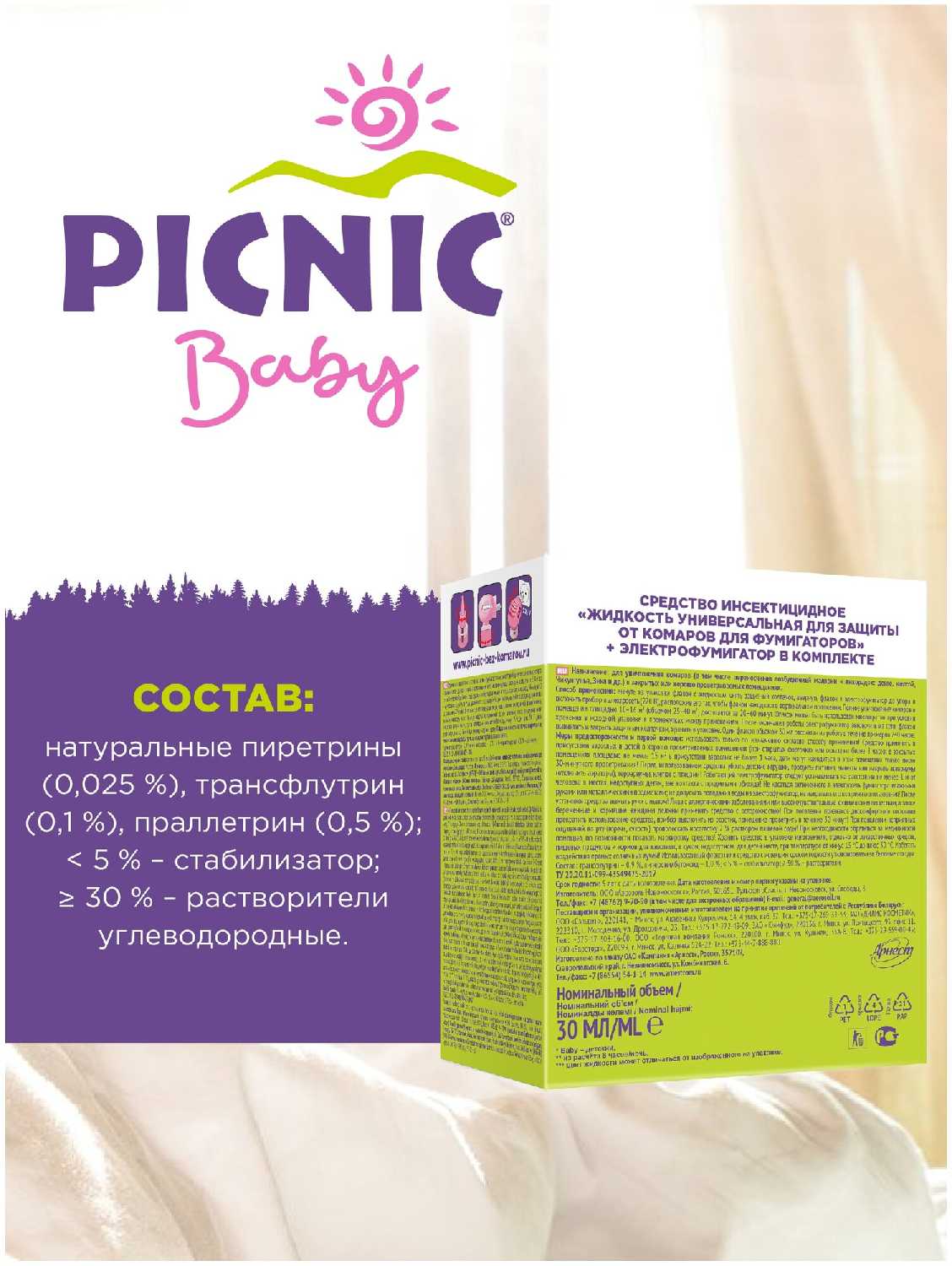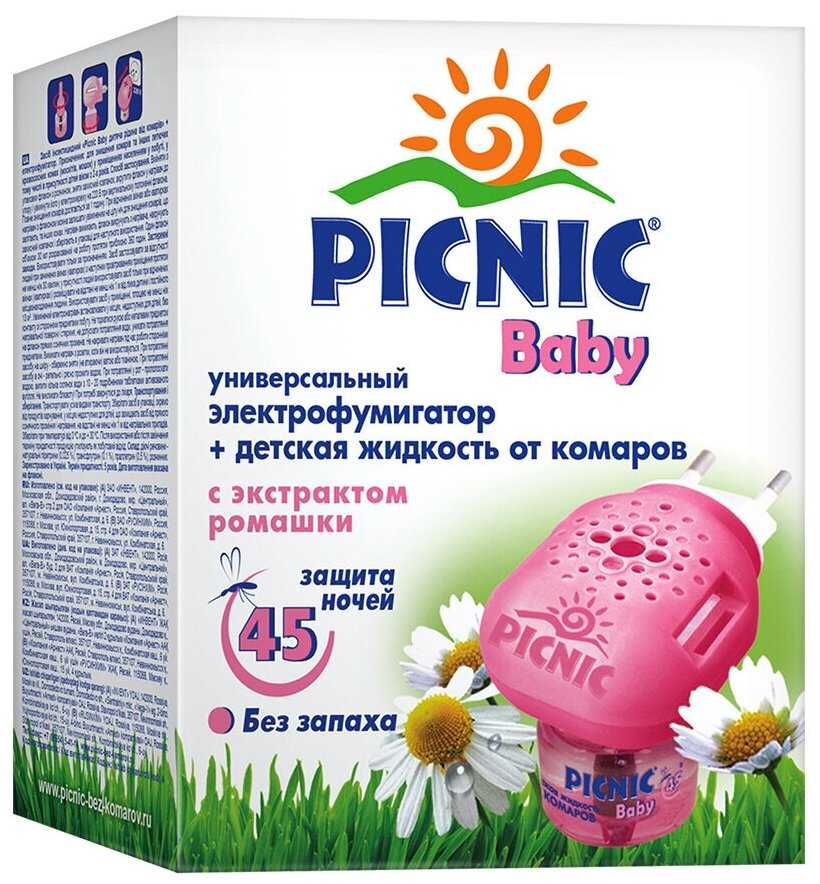| Подробная комплектация : | Picnic Baby Комплект Электрофумигатор + жидкость от комаров 45 ночей, 30 мл - 1 шт |