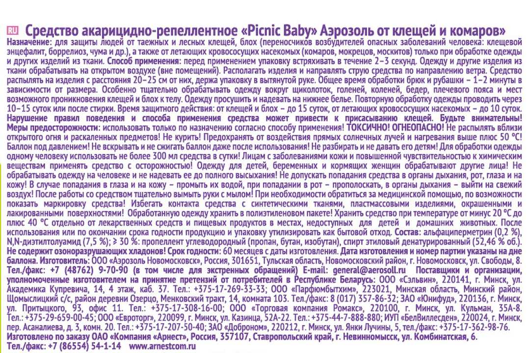 Подробная комплектация : | Picnic Аэрозоль от клещей и комаров Baby, 125 мл - 2 шт |