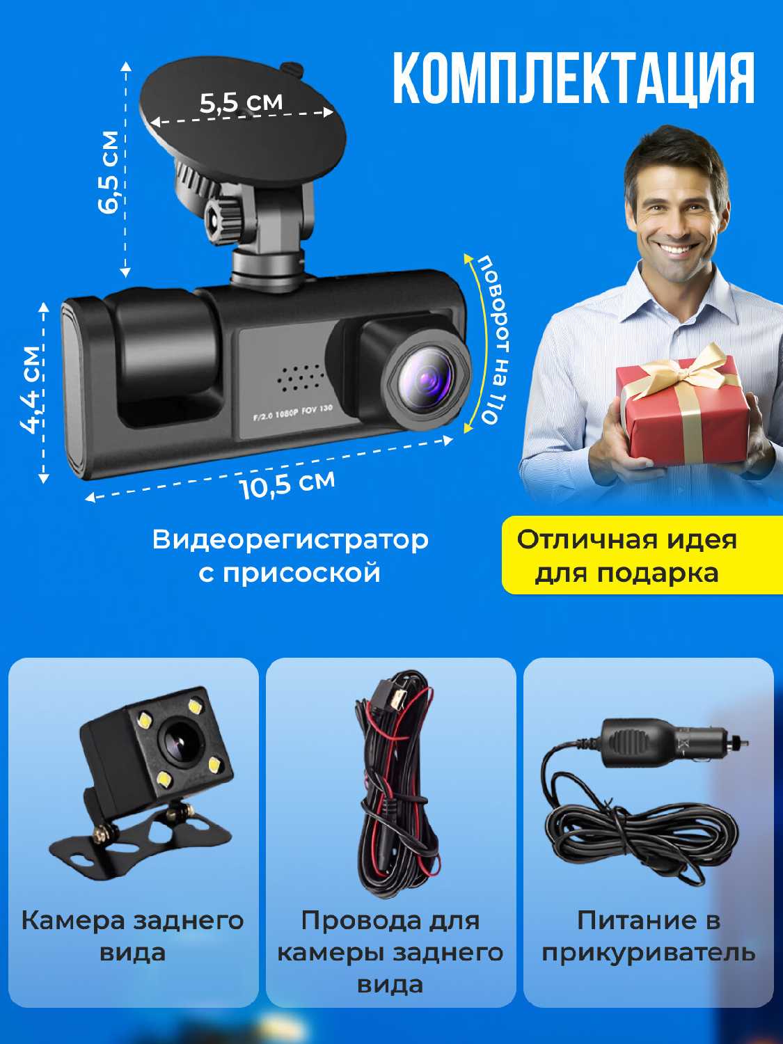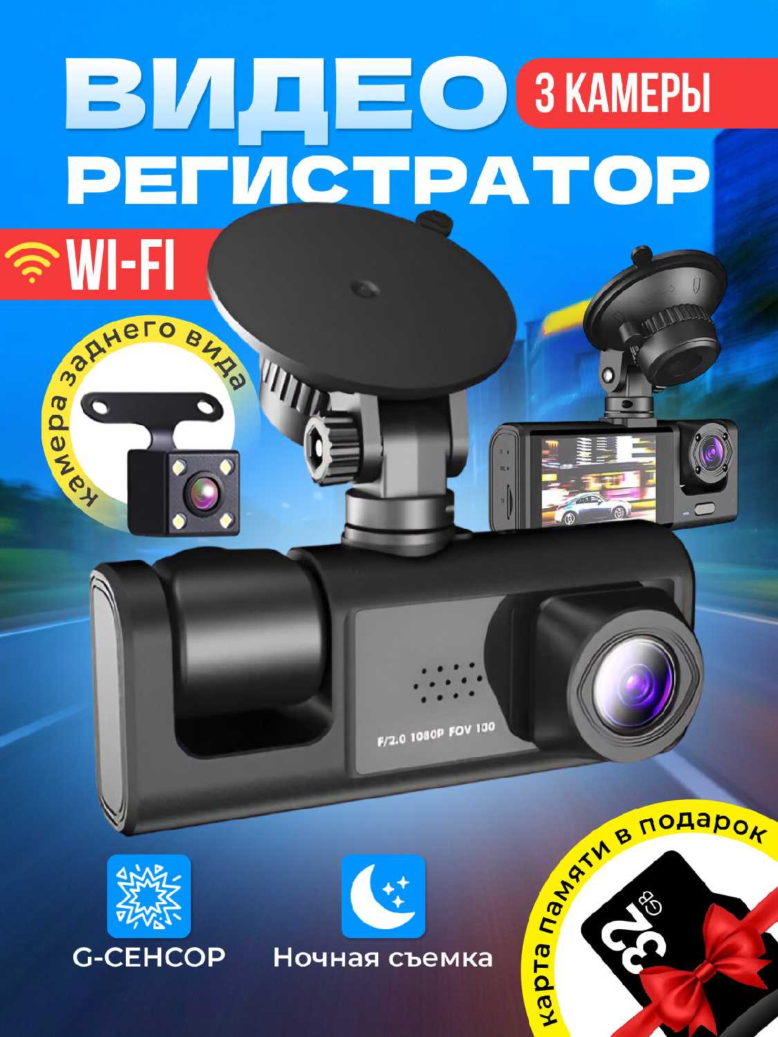 Отзывы о Видеорегистратор автомобильный с Wi-Fi, камерой салона, заднего вида и записью звука