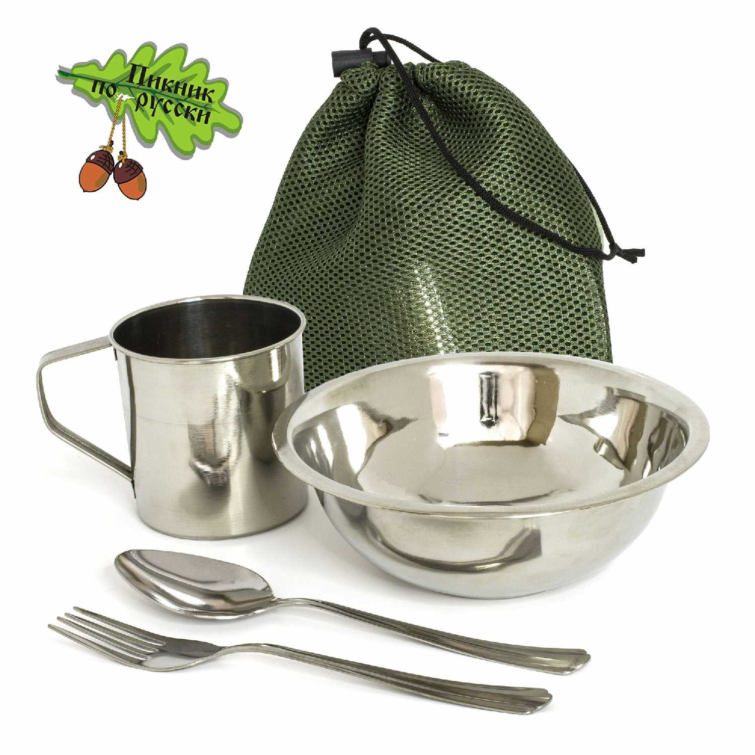 | Состав набора : | вилка, кружка, ложка, миска, чехол |