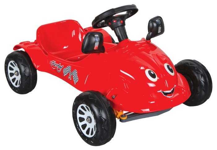 Большой минус, что педали две, НО крутят одно колесо. Я не рекомендую покупать для прогулок по улице, где не ровные дороги, так как машина застревает, второе колесо не крутят педали. Раньше у меня у сына старшего в 2005 году была машина, оба колеса крутились, сын по улице гонял и по ямам тоже. И раньше такие машинки они были чуть повыше