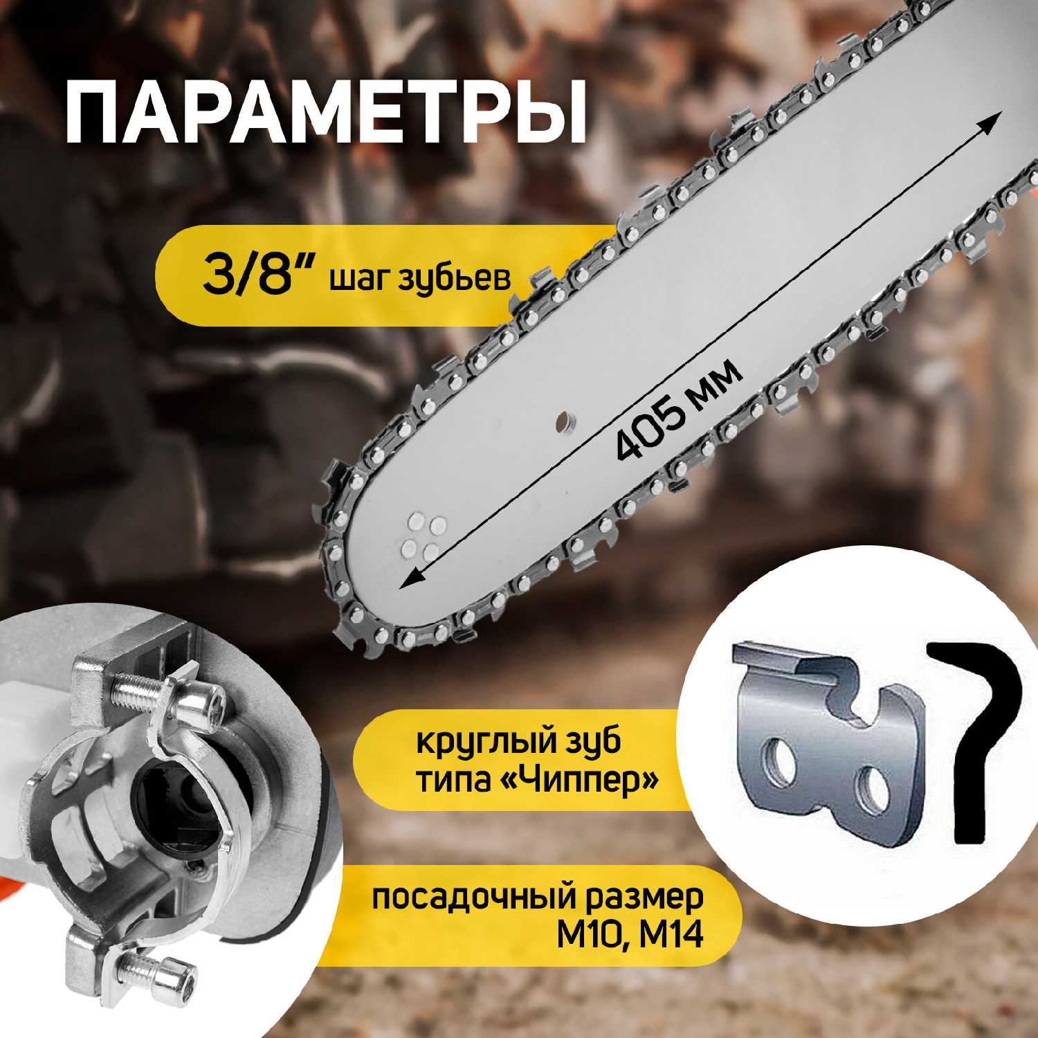 5.6/10 балловTUNDRA Насадка для УШМ цепная пила (405 мм 16", 59 звеньев, 1.3 мм, шаг 3/8", M10, М14)