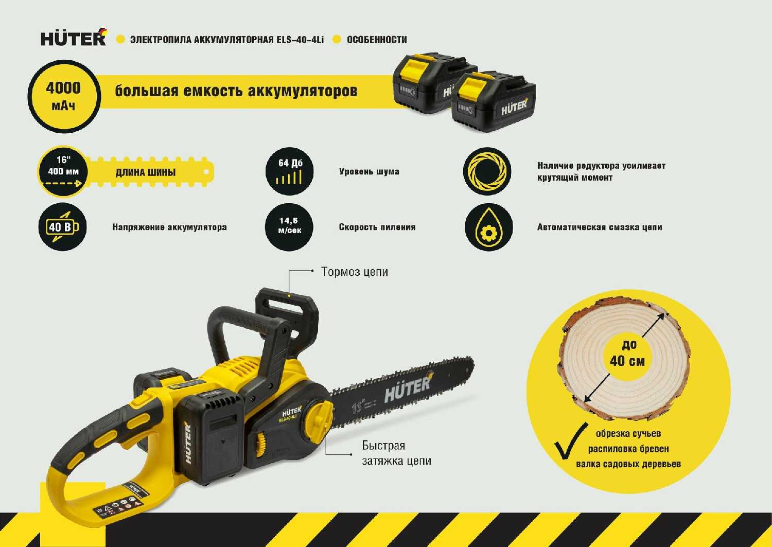 Huter Электропила аккумуляторная (ELS-20/8-Li-2К-BL)
