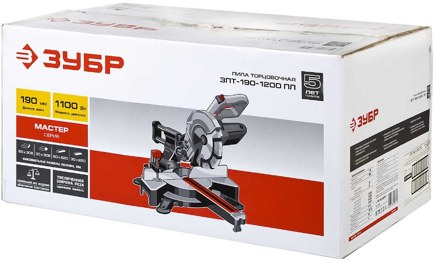 7.6/10 балловЗУБР Торцовочная сетевая пила с протяжкой ЗПТ-190-1200 ПЛ