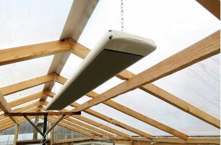 | Подробная комплектация : | три керамических потолочных обогреватля по 800 Вт, терморегулятор, потолочные крепления |