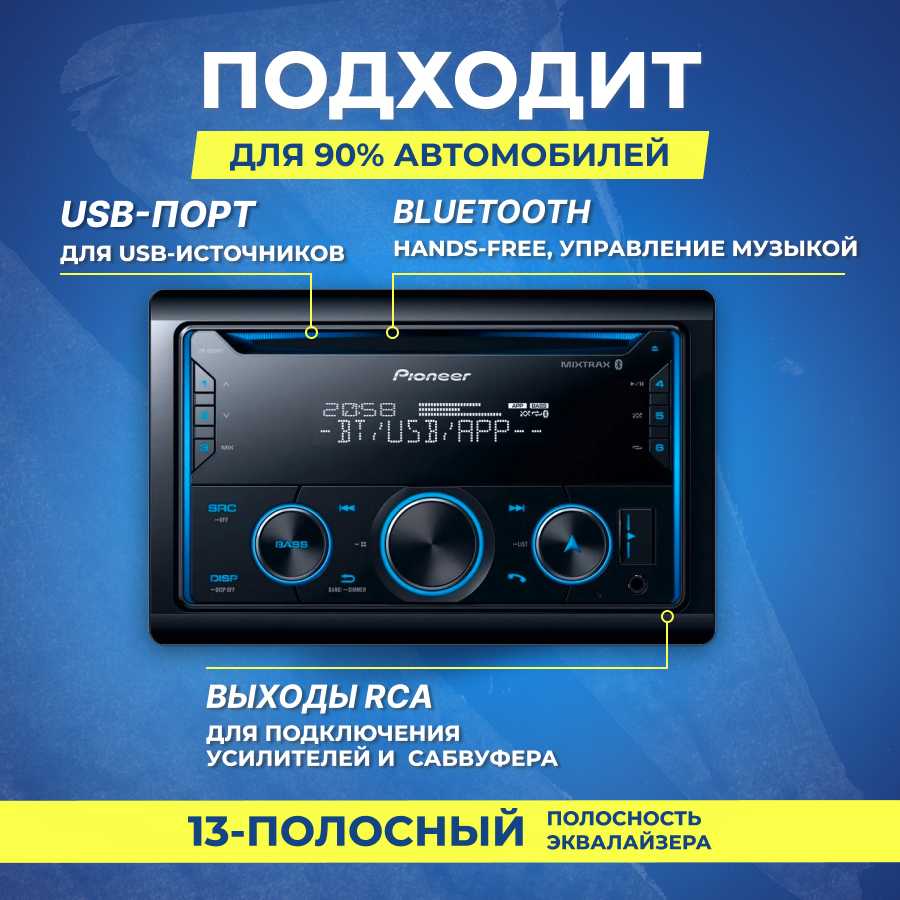 Отличная магнитола, звук на высоте, эквалайзер настраивается, блютуз работает. Пионер одним словом.