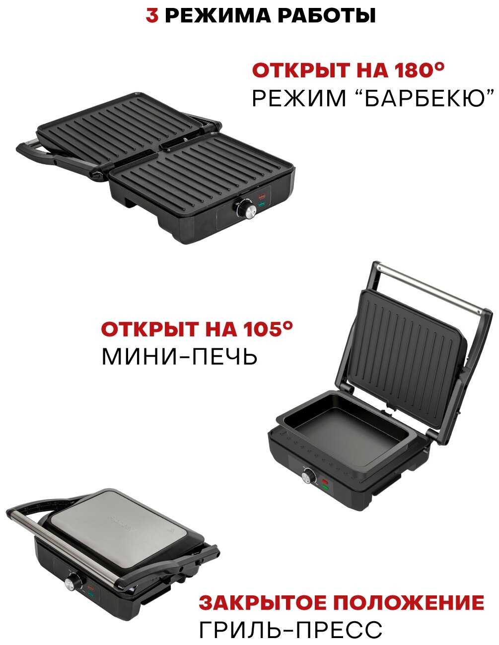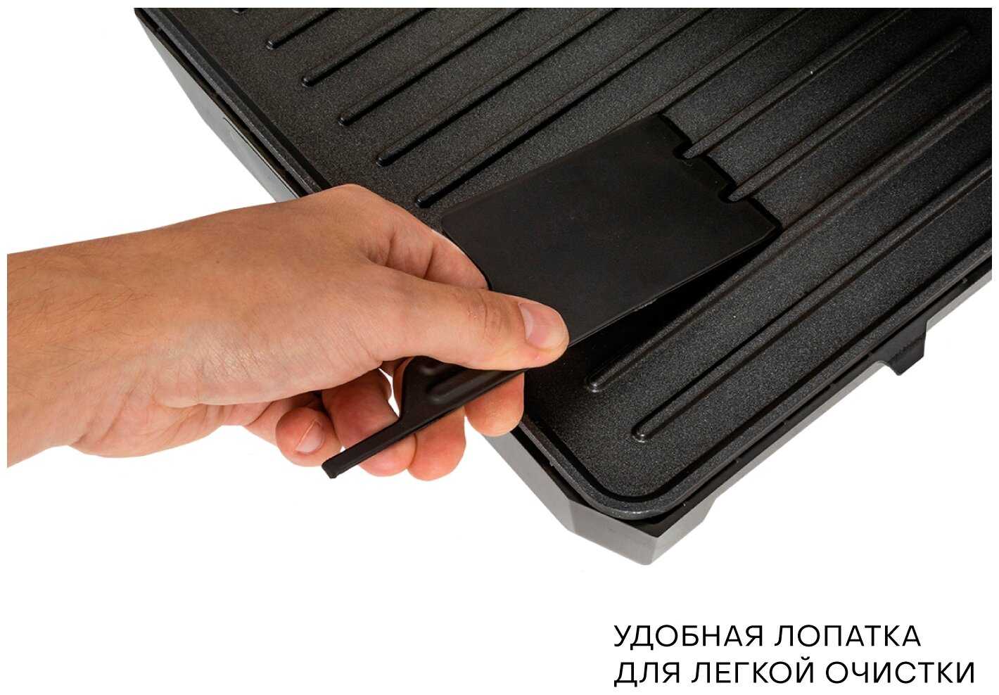 | Особенности : | антипригарное покрытие, контактный гриль, поддон для сбора жира, регулировка высоты верхней панели, съемные пластины |