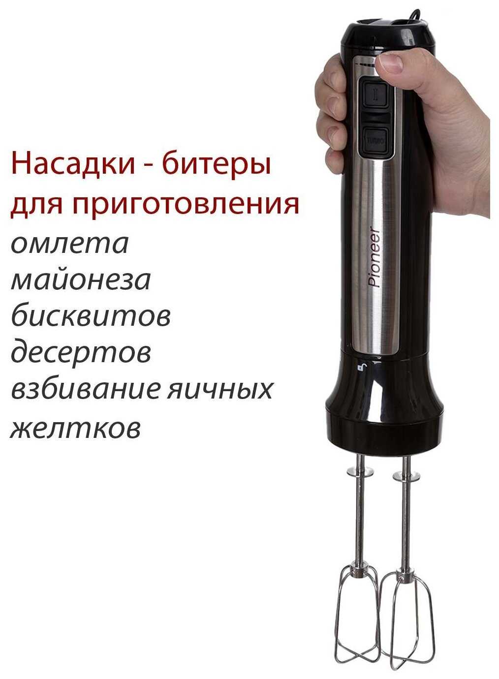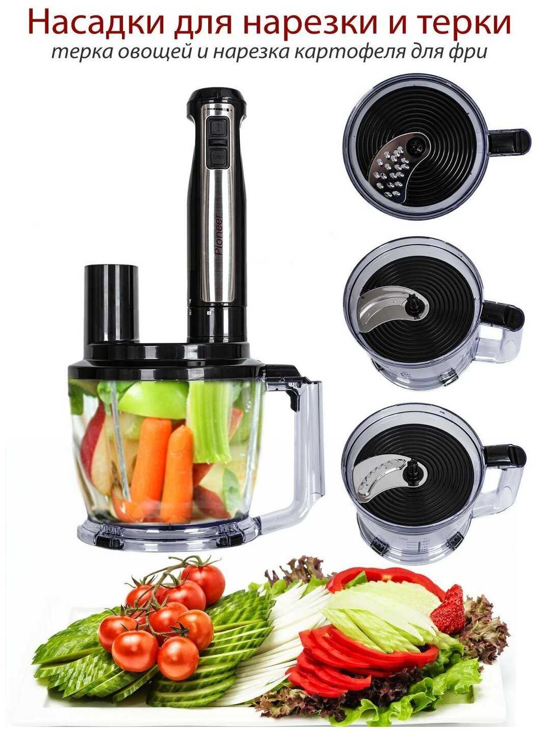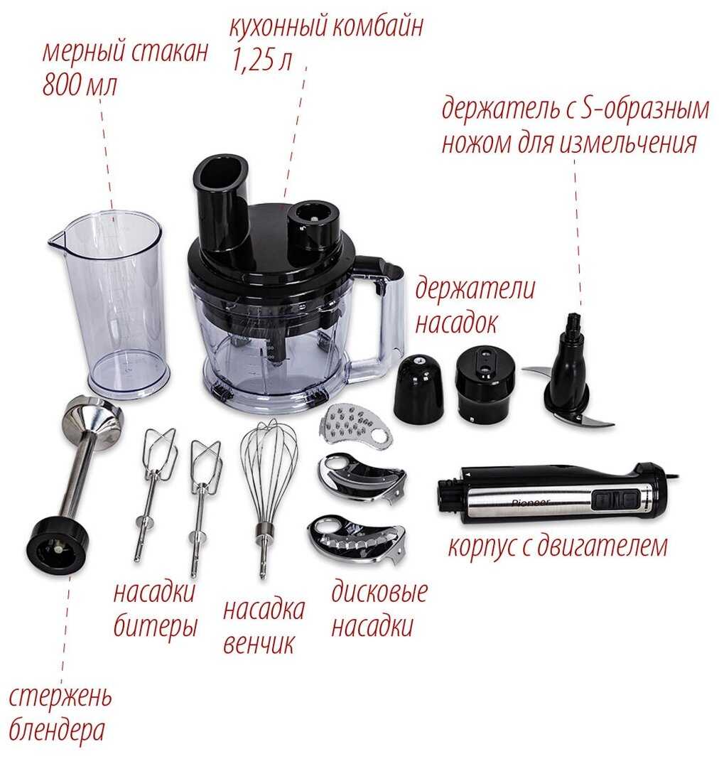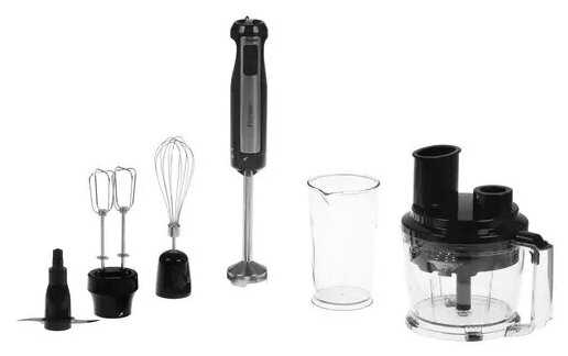 | Насадки : | венчик для взбивания, диск для нарезки ломтиками, измельчитель, насадка для шинковки, терка |