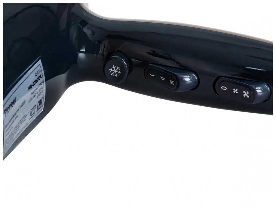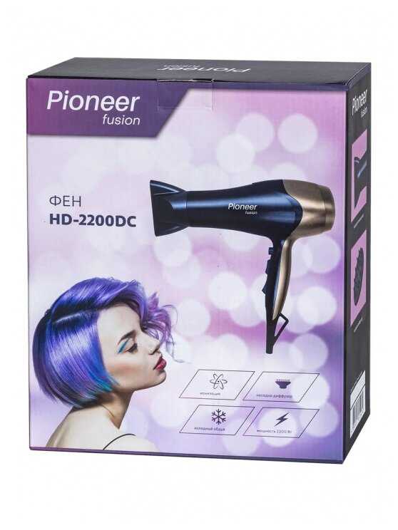 - + Стильный фен Pioneer мощностью 2200 Вт с независимыми регуляторами скорости и нагрева идеально подойдет для любого типа волос.