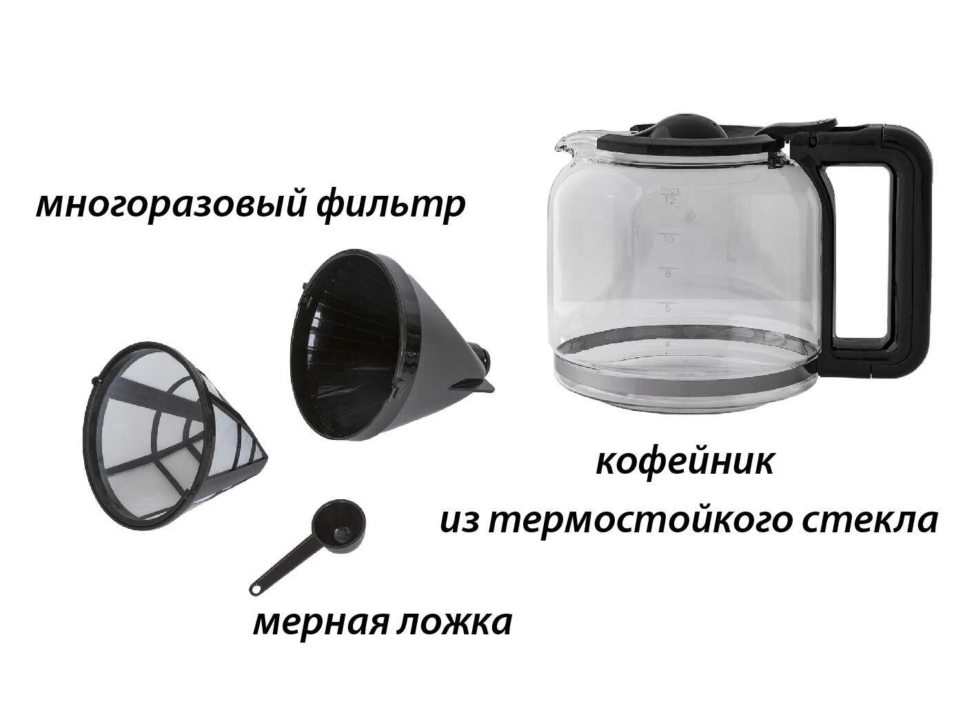Удобство обслуживания и эксплуатации Ключевым минусом признано неудобство залива воды – узкая горловина резервуара усложняет процесс. Многоразовый металлический фильтр (в комплекте) упрощает чистку, но колба имеет спорную градуировку: отметки начинаются с 4 чашек, что затрудняет приготовление малых порций. Пользователи отмечают сложности с запуском режима очистки: инструкция не даёт чётких указаний, а сенсорная панель не всегда реагирует на команды. Хотя колба легко моется, её термостойкое стекло требует аккуратного обращения.