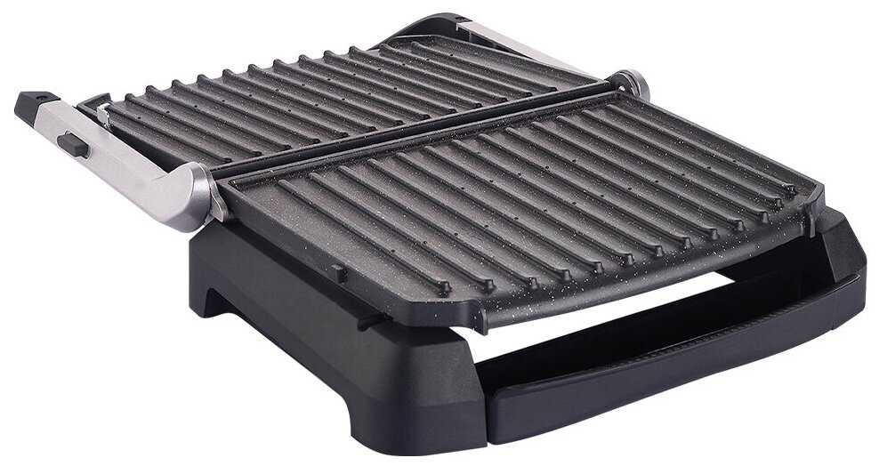 - Нагревается за считанные минуты, готовит мясо, рыбу и овощи с двух сторон одновременно.