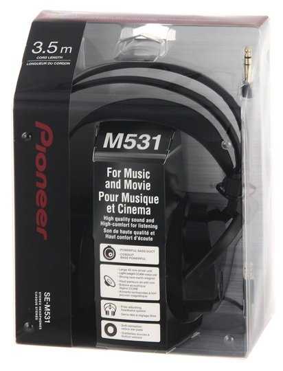 - + Наушники Pioneer SE-M531 купил ,через три месяца пластик креплений динамиков потрескался и крепления пришли в негодность,пластиковая лента под дужкой деформировалась.Амбушюры матерчатые,уши в них не потеют.Чаши наушников очень удобные.Звук отлично передают,можно в них целый день провести.Проушины заклеил суперклеем.