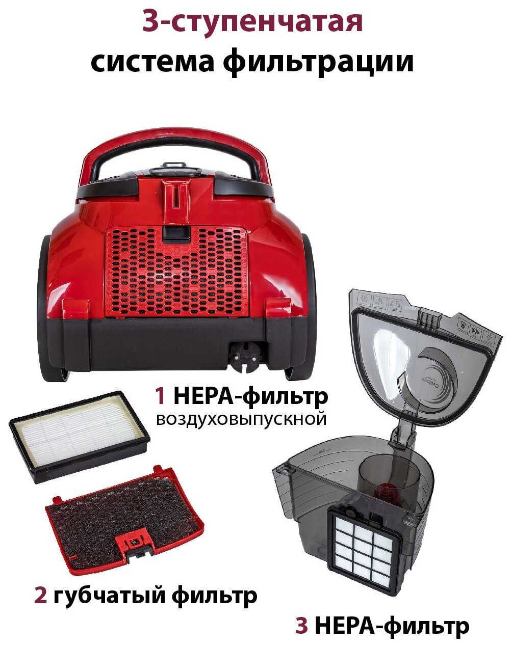 - HEPA-фильтр 12-го класса задерживает 99.97% частиц размером от 0.3 мкм, что облегчает дыхание аллергикам после уборки.