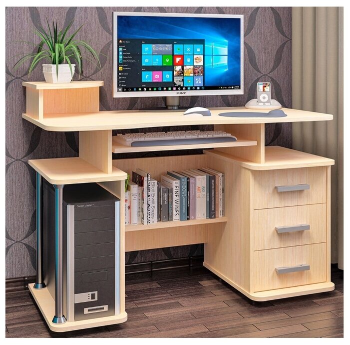 | Особенности : | надстройка, отделение для системного блока, полка для клавиатуры, полка для принтера, с тумбой, с ящиком для хранения |
