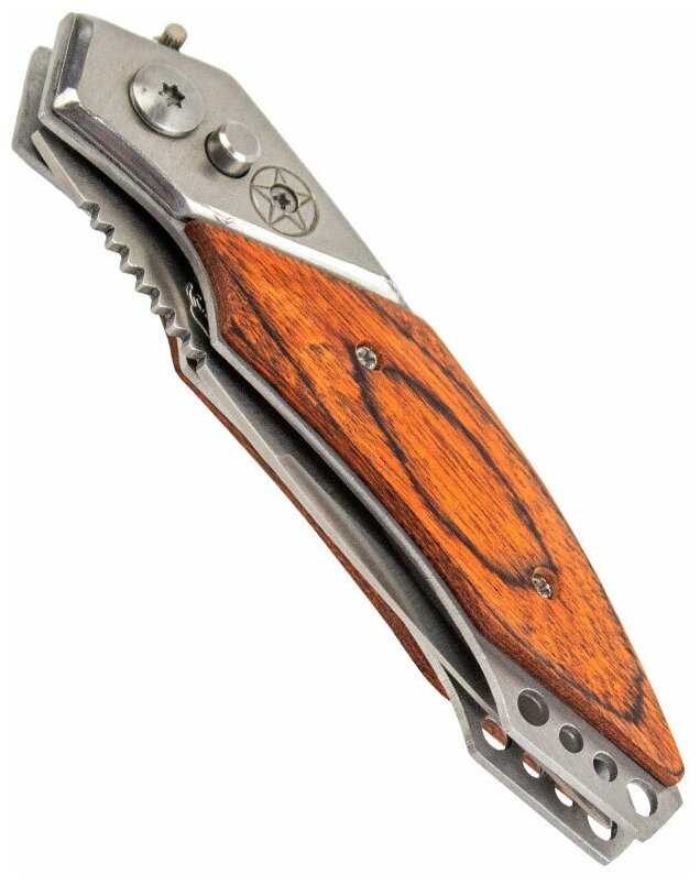 - + Хорошая выкидуха. Заточен хорошо, сталь в порядке, есть предохранитель.