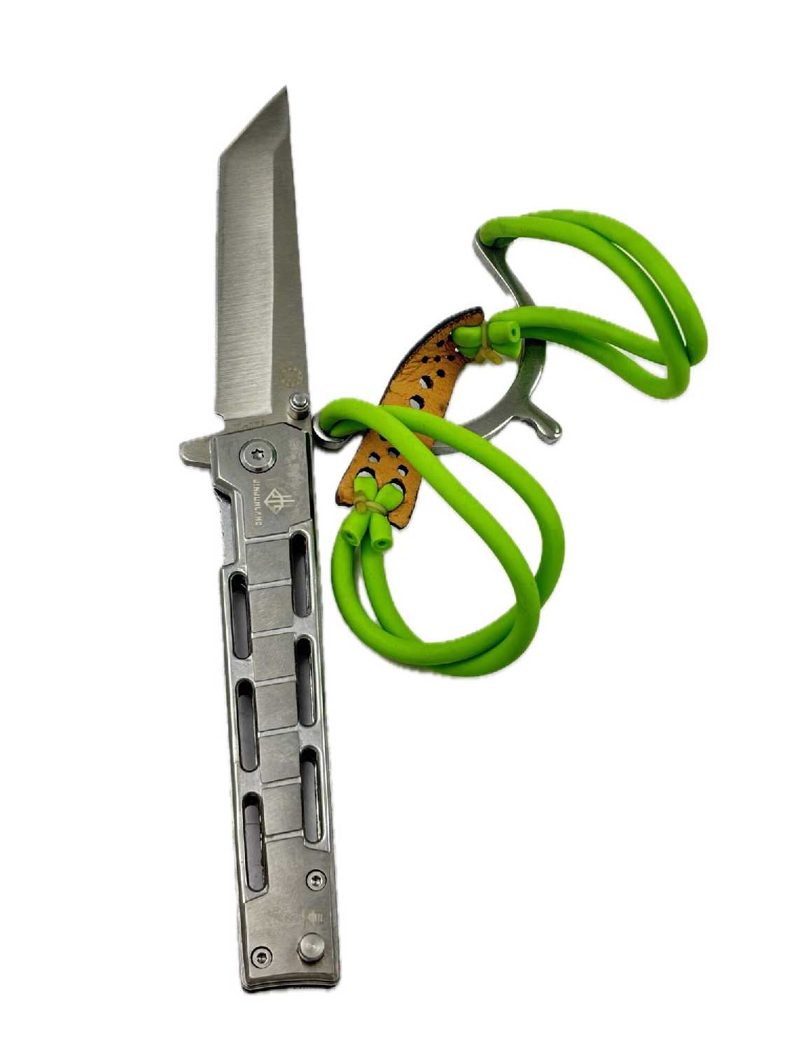 Крутой нож, очень удобный в приминение. Удобно собой носить есть подцепка корману, можно носить в кармане. Рогатка вообще зверь бутылки на раз, разносит.