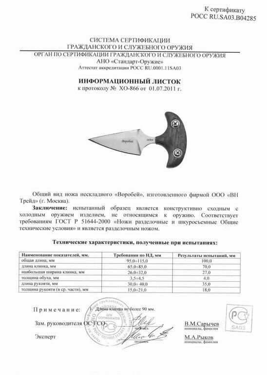 | Материал рукояти : | дерево, пластик |