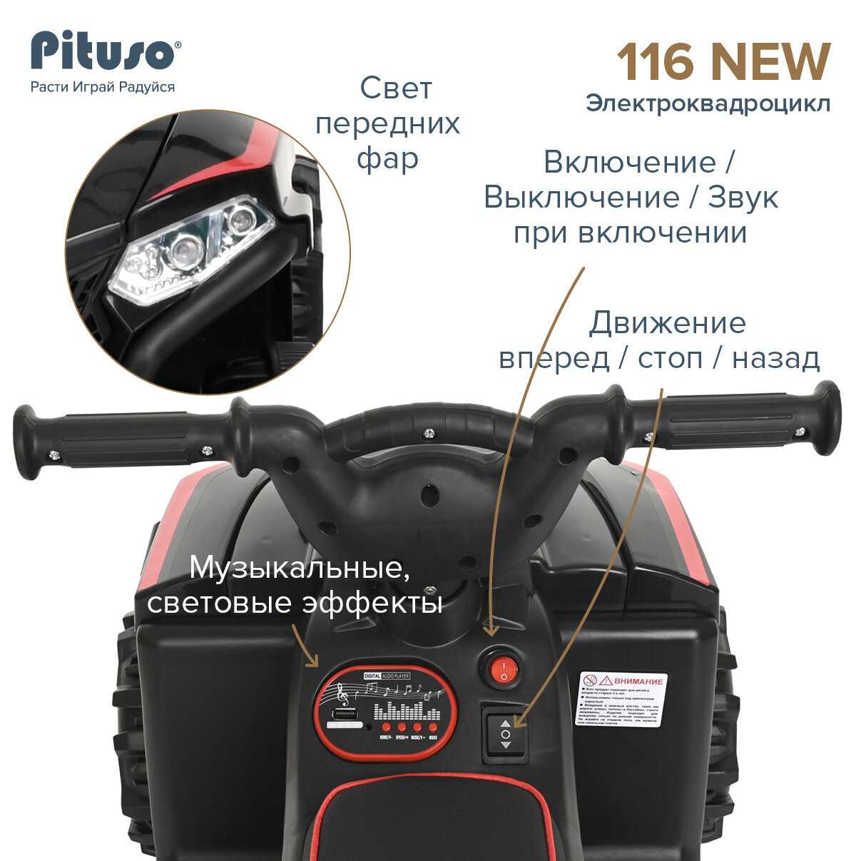 Плюсы по отзывам пользователей - Почему стоит купить Pituso Квадроцикл (2600005)?: