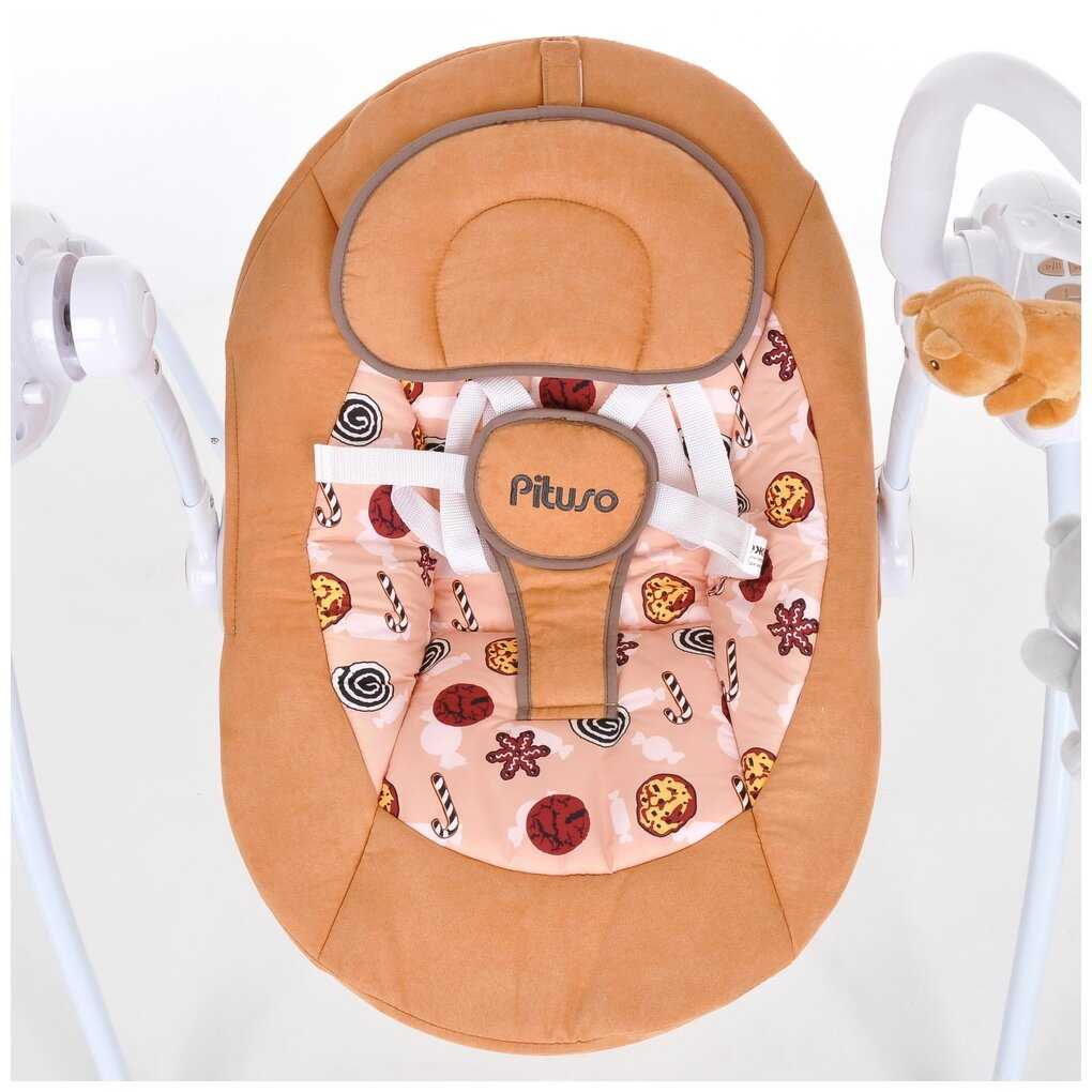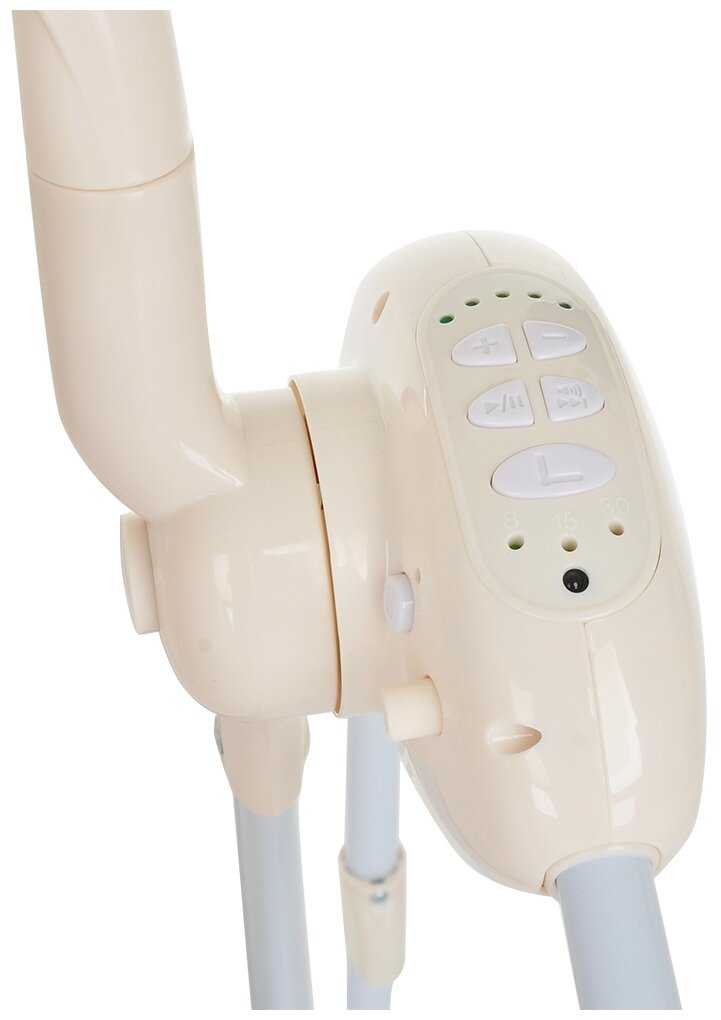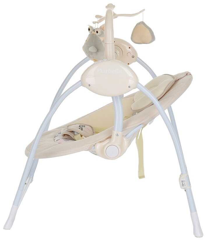 - + Отличная качель для малыша, имеет несколько режимов качания разной интенсивности. Регулируется наклон качели. Есть несколько приятных мелодий для малыша, а также пульт управления. Работает от сети. Также во время качания малыш может любоваться игрушками вверху ( я эти игрушки иногда меняла на другие свои для разнообразия)