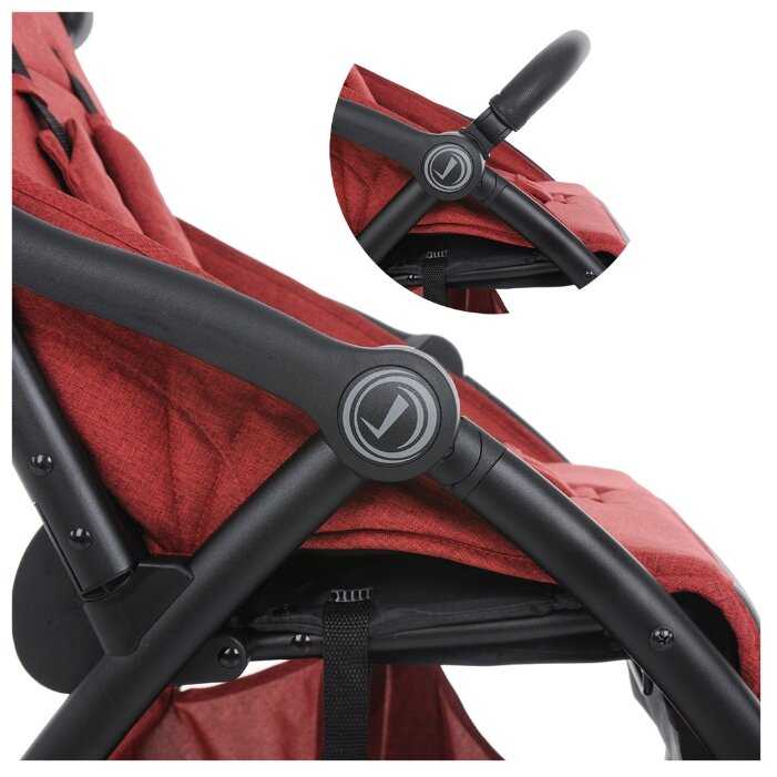 - складывается одной рукой 4 колеса вес коляски 6.8 кг нагрузка до 15 кг возможность установки прогулочного блока пятиточечные ремни безопасности капюшон из ткани пластиковые колеса пружинная амортизация корзина для покупок