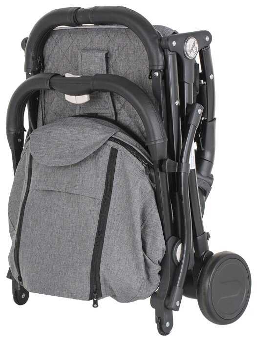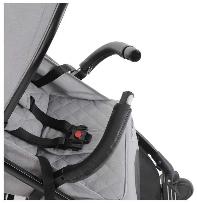 - складывается одной рукой 4 колеса вес коляски 6 кг возможность установки прогулочного блока пятиточечные ремни безопасности капюшон из ткани резиновые колеса пружинная амортизация корзина для покупок