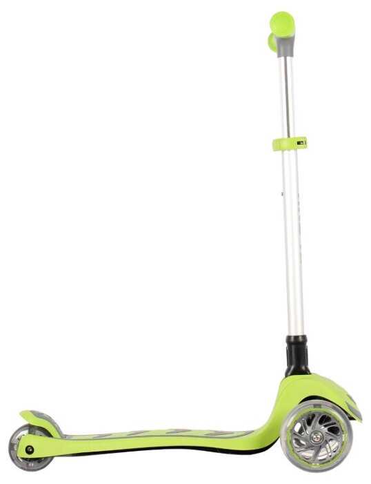 - Высота руля регулируется в трех положениях (максимум — 72 см), что позволяет адаптировать самокат для детей от 3 до 7 лет (рост 100–125 см).