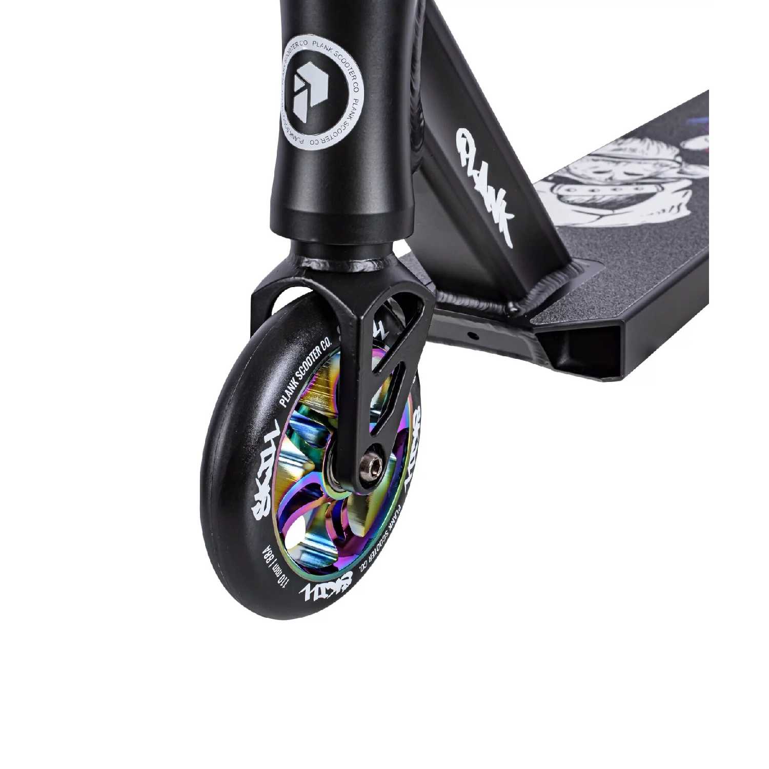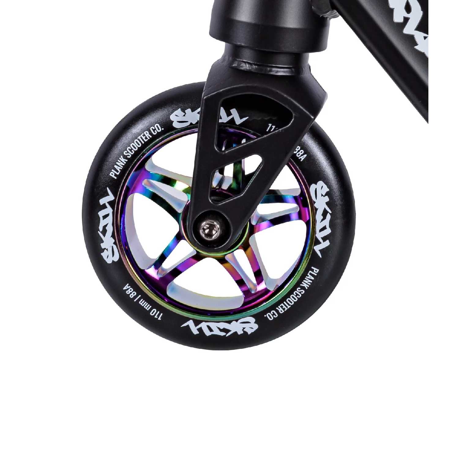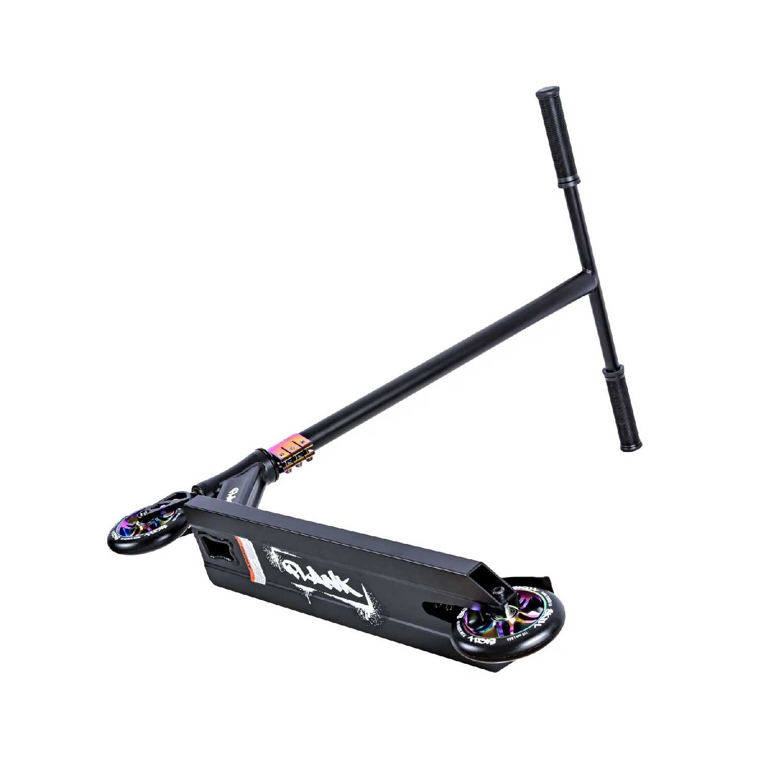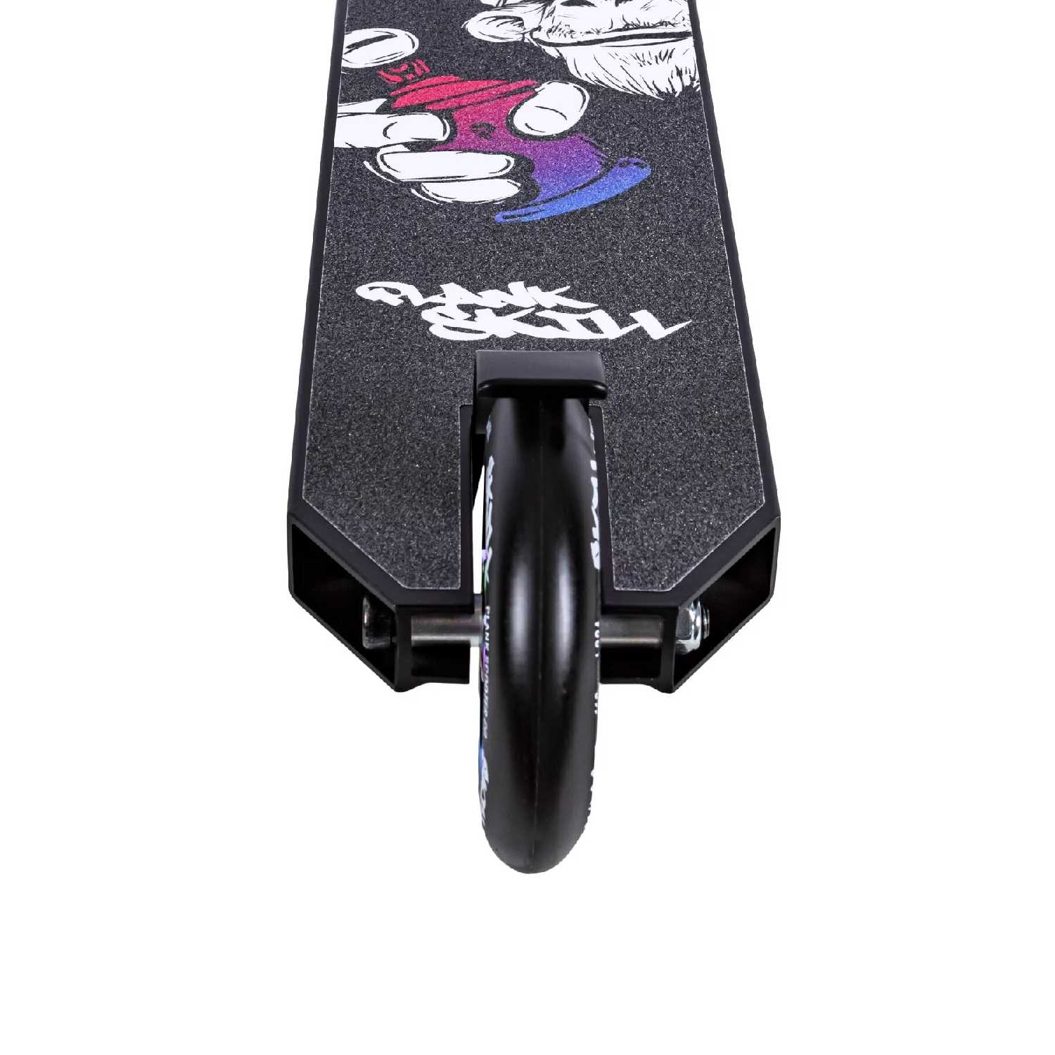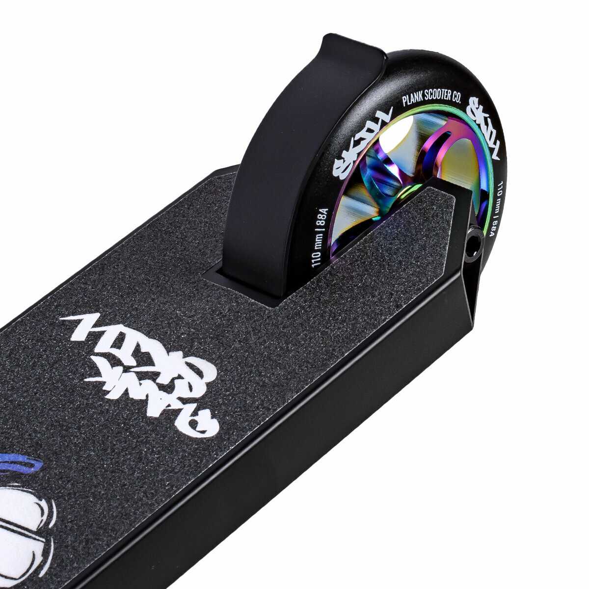 - + крепкая и одновременно легкая конструкция. Не складной, поэтому нет люфтов. При этом колеса нормального диаметра, самокат можно использовать как городской (а не как исключительно трюковый). Ребенок доволен.