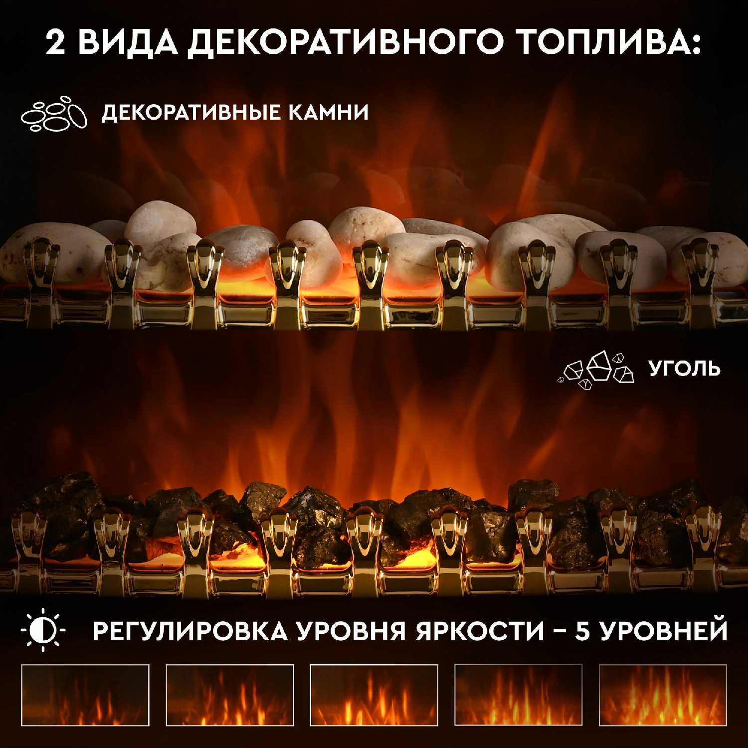 - Два вида декоративного топлива (уголь или дрова) усиливают аутентичность вида, способствуя созданию атмосферы уюта в квартирах и на дачах.