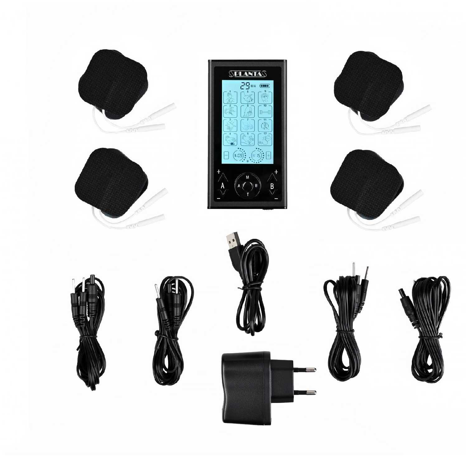 - + с работой справляеться на 100%, мощный - на всю мощность ещё не включал, электроды наклейки служат много раз, батарейки разряжает медленно