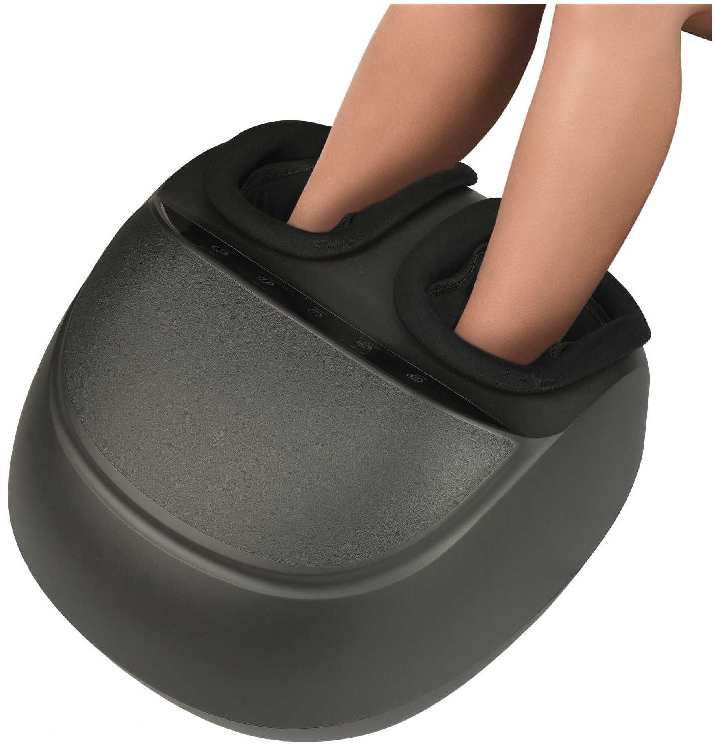 - Три уровня компрессии и три интенсивности шиацу позволяют выбрать подходящий вариант: слабый для расслабления, сильный для глубокого проминания, что подходит для разных размеров ног (от 37 до 46).